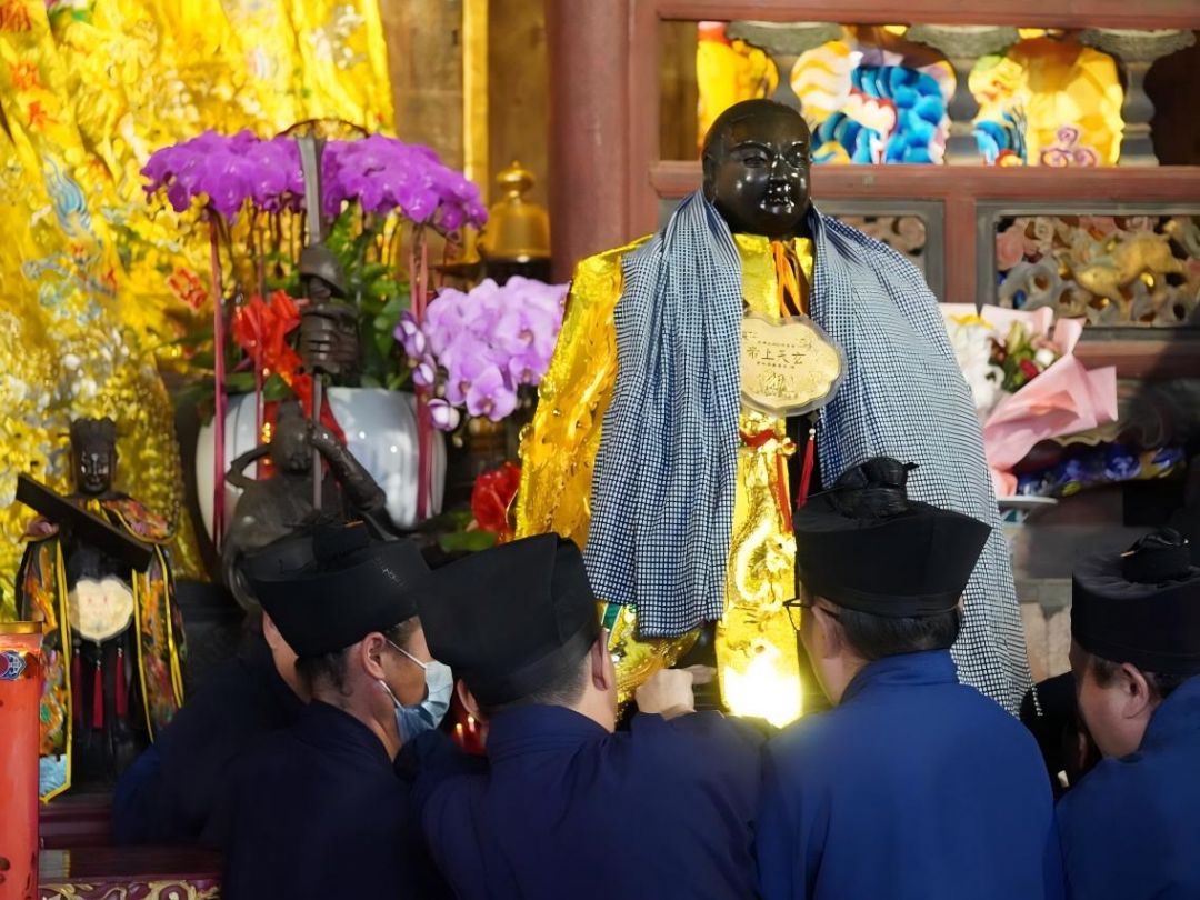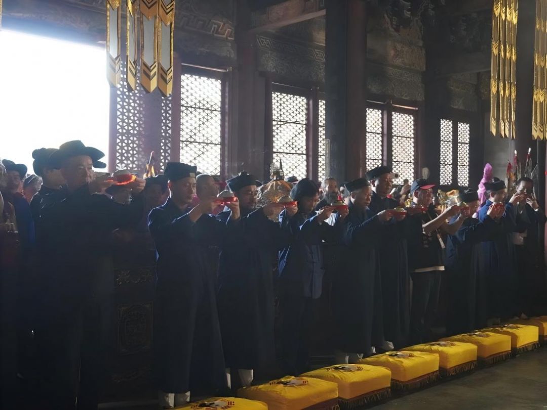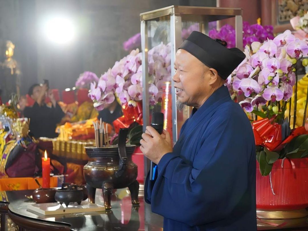 9月29日上午,武当山紫霄宫张灯结彩,玄帝神尊回銮安座仪式在此举行。刘文国会长率仪仗队迎神尊入殿、安奉于原位,闽台各宫观代表依次行铭香、鲜花、明灯、净水、鲜果呈敬之礼,虔诚礼拜。刘文国表示,神尊巡安功德圆满、紫霄大殿修缮重现灵光,既是道脉传承盛事,更是“华夏同根、两岸一家”的生动体现,呼吁广大信众深化两岸道脉联结,让玄帝圣德光耀千秋。